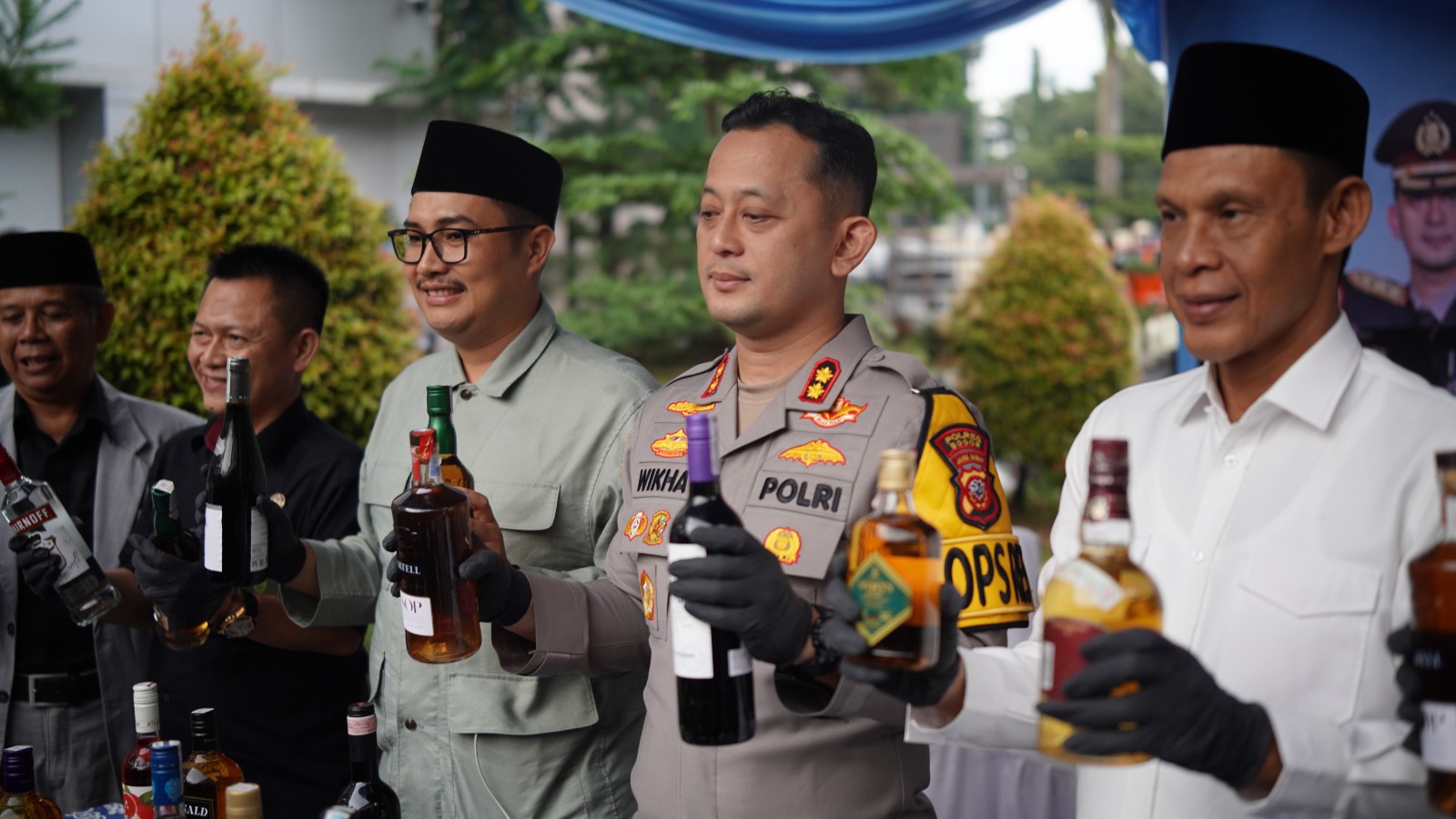 Usai penyampaian rilis akhir tahun, kegiatan dilanjutkan dengan pemusnahan barang bukti minuman keras, antara lain: