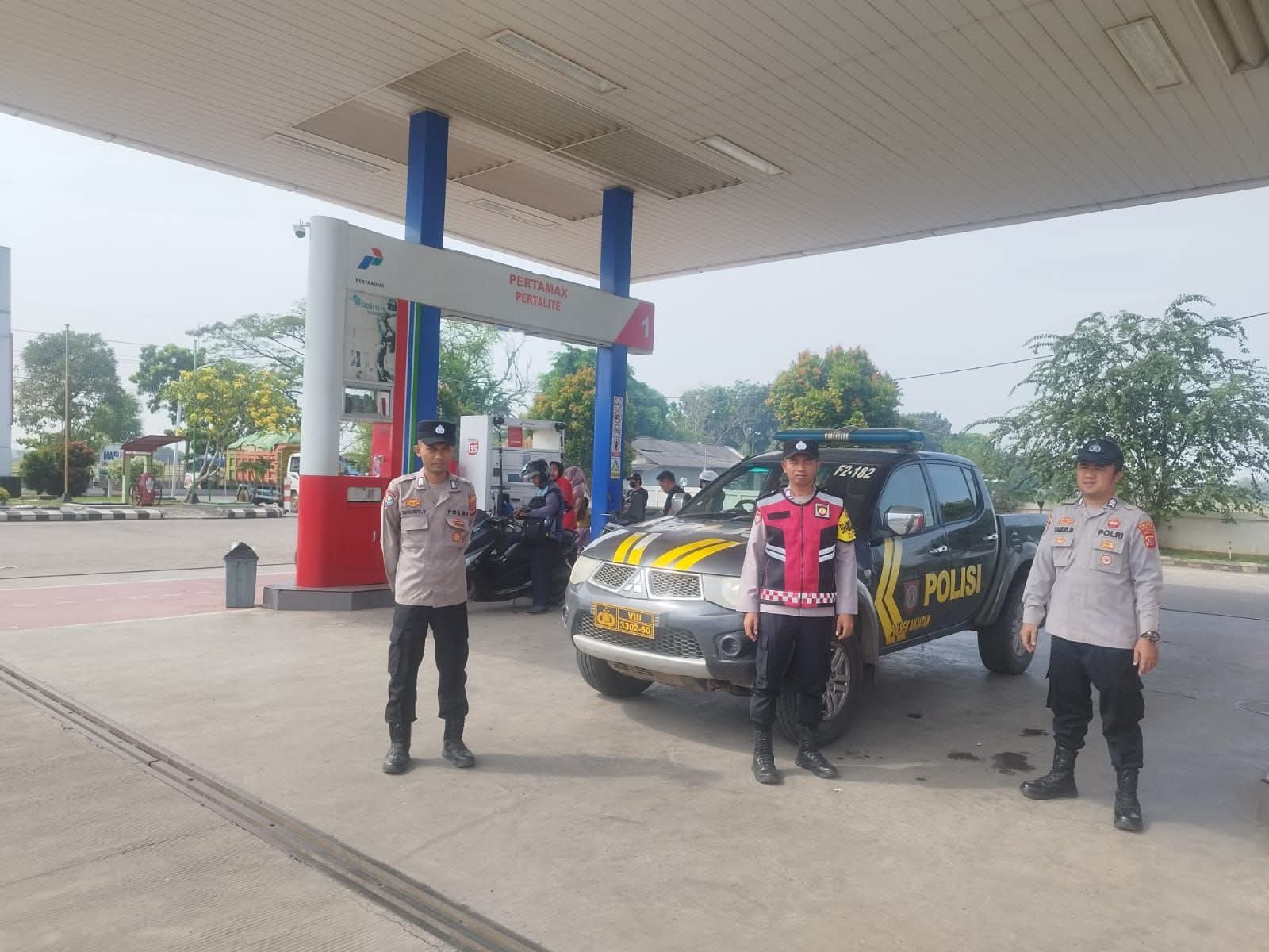 Patroli ini dilakukan sekaligus untuk mengecek Stok BBM di SPBU serta memantau situasi kamtibmas di wilayah Kecamatan Anjatan, Kabupaten Indramayu, Rabu (14/1/2026).