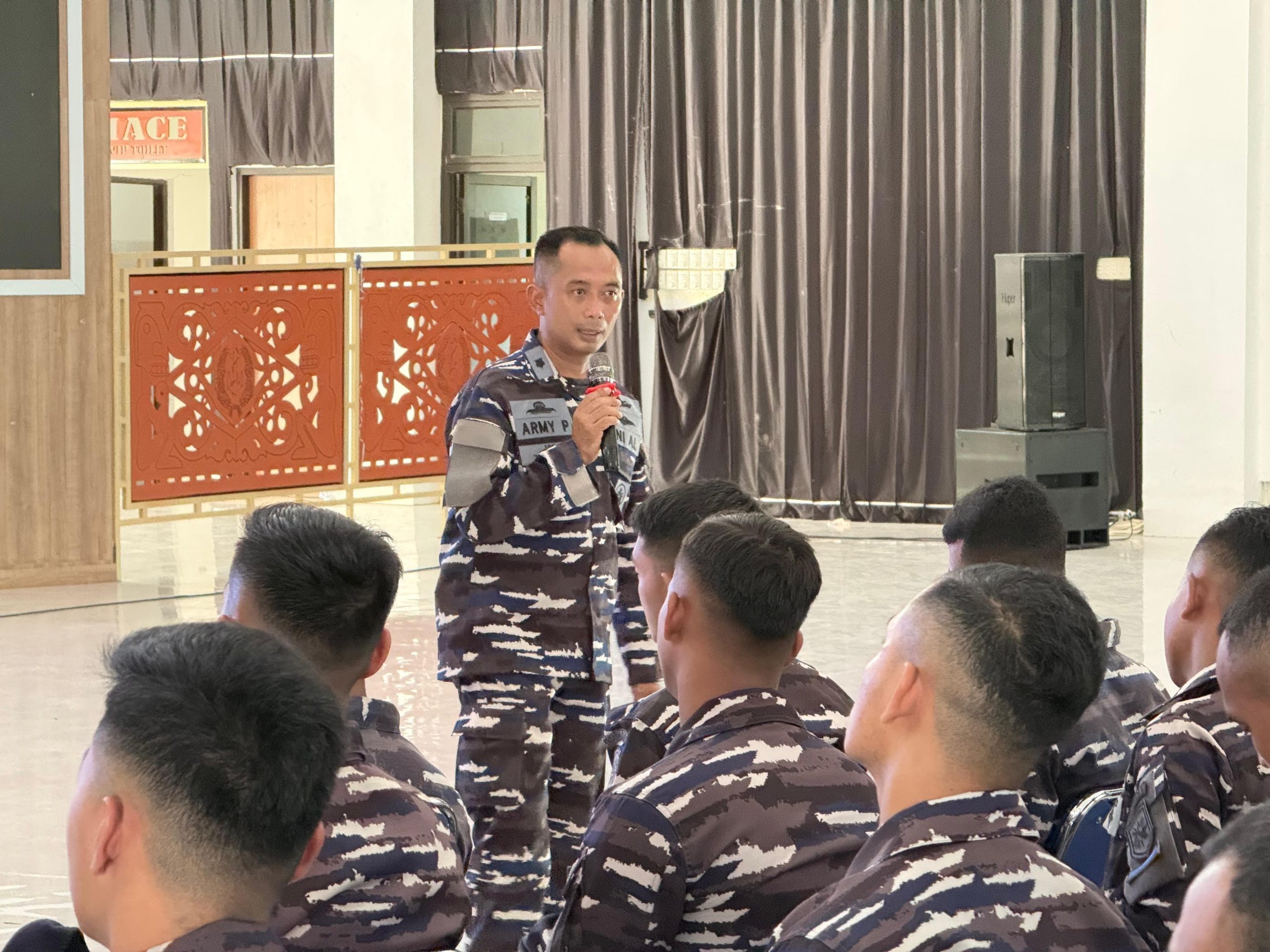 Materi Tradisi Khusus TNI Angkatan Laut disampaikan oleh Mayor Laut (P) Army Provytama, selaku Pjs Pasops Satfib Armada III. Dalam paparannya dijelaskan bahwa tradisi TNI AL merupakan bagian dari tata kehidupan prajurit laut yang sarat nilai kehormatan, loyalitas, jiwa korsa, dan kesinambungan sejarah pengabdian, yang berperan penting dalam membentuk karakter prajurit agar profesional dan berdisiplin.